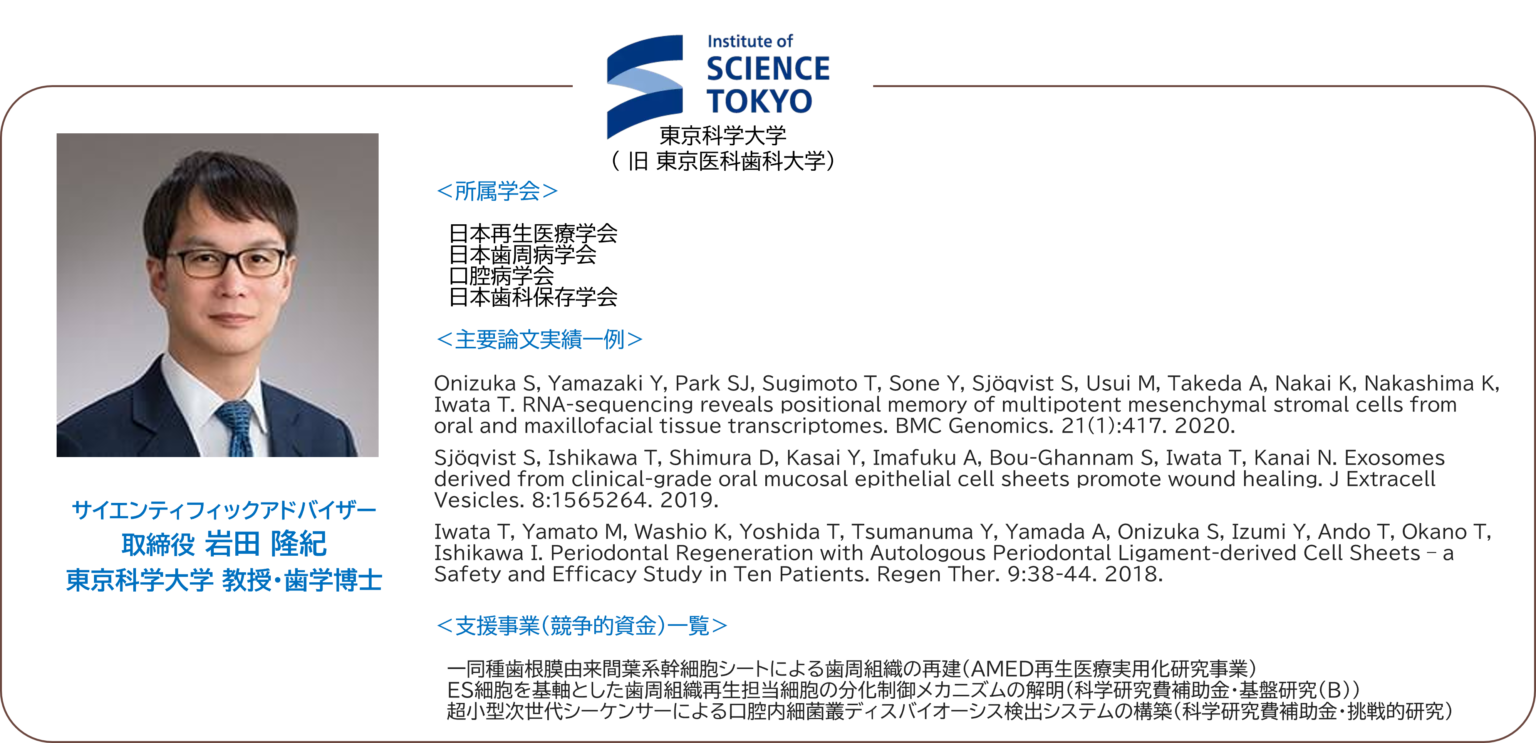 Iwata T, Yamato M, Washio K, Yoshida T, Tsumanuma Y, Yamada A, Onizuka S, Izumi Y, Ando T, Okano T, Ishikawa I. Periodontal Regeneration with Autologous Periodontal Ligament-derived Cell Sheets – a Safety and Efficacy Study in Ten Patients. Regen Ther. 9:38-44. 2018.